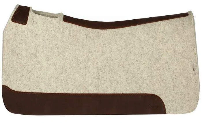 This saddle pad from 5 Star Equine is made of Natural Colored Virgin Wool. It is 3/4″ thick. It is a great pad for Roping, Ranching, Trail Riding, Running barrels, or almost anything!  The 100% pure virgin wool felt wicks away moisture, cleans up easily and stabilizes your saddle with limited cinching. Wear leathers provide protection and durability. Hand-made in the USA!