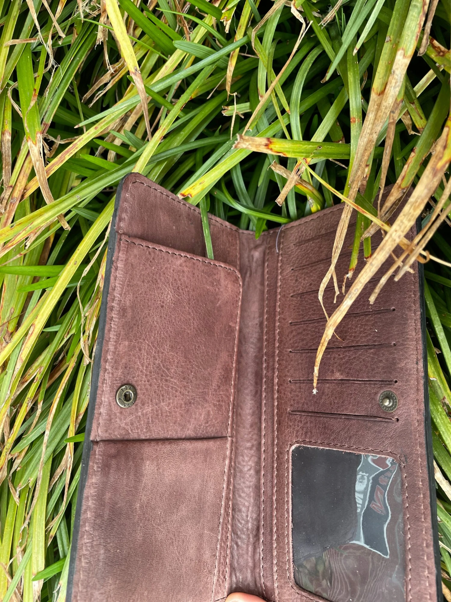 This gorgeous buck stitch wallet can be used for your everyday use or used to spice up an outfit.