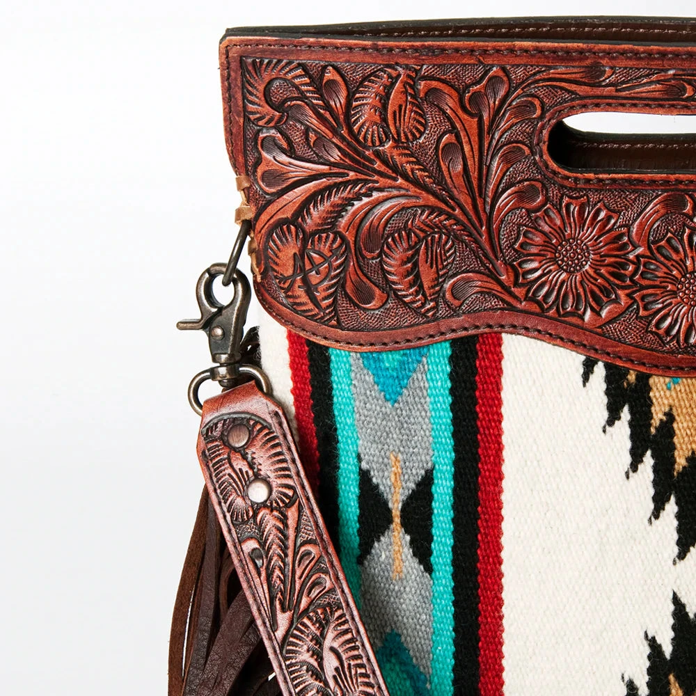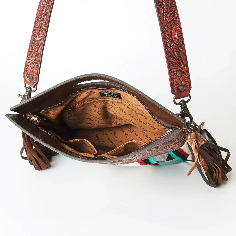 This is a beautiful crossbody with all the fringe you could ever want! Just look a those beautiful colors paired with the rich dark leather.