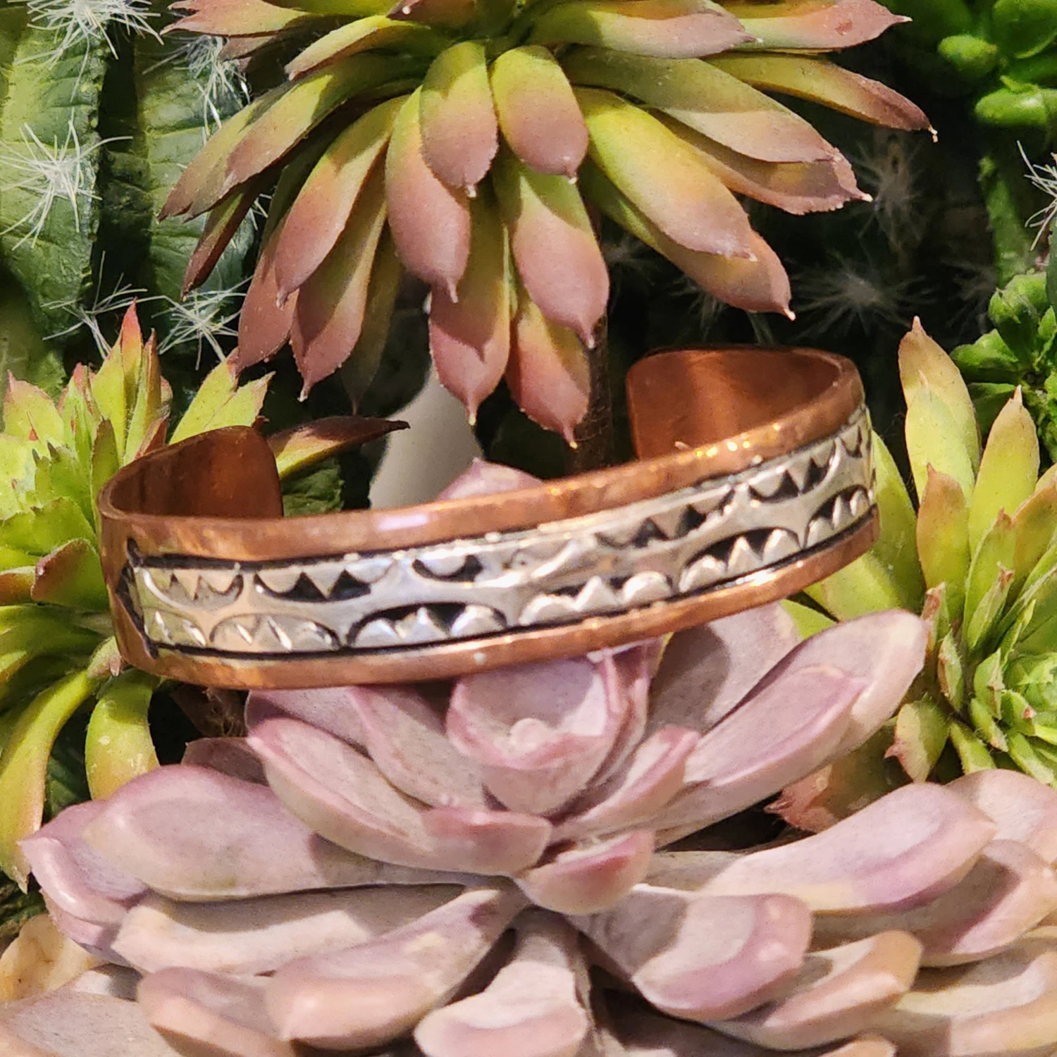 This is a beautiful copper and sterling silver cuff. The barbed wire engraving is such a pretty added bonus.