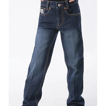 These Boys Cinch White Label Jeans are just like dads with their dark stonewash and hand sanding. They feature an adjustable waistband.