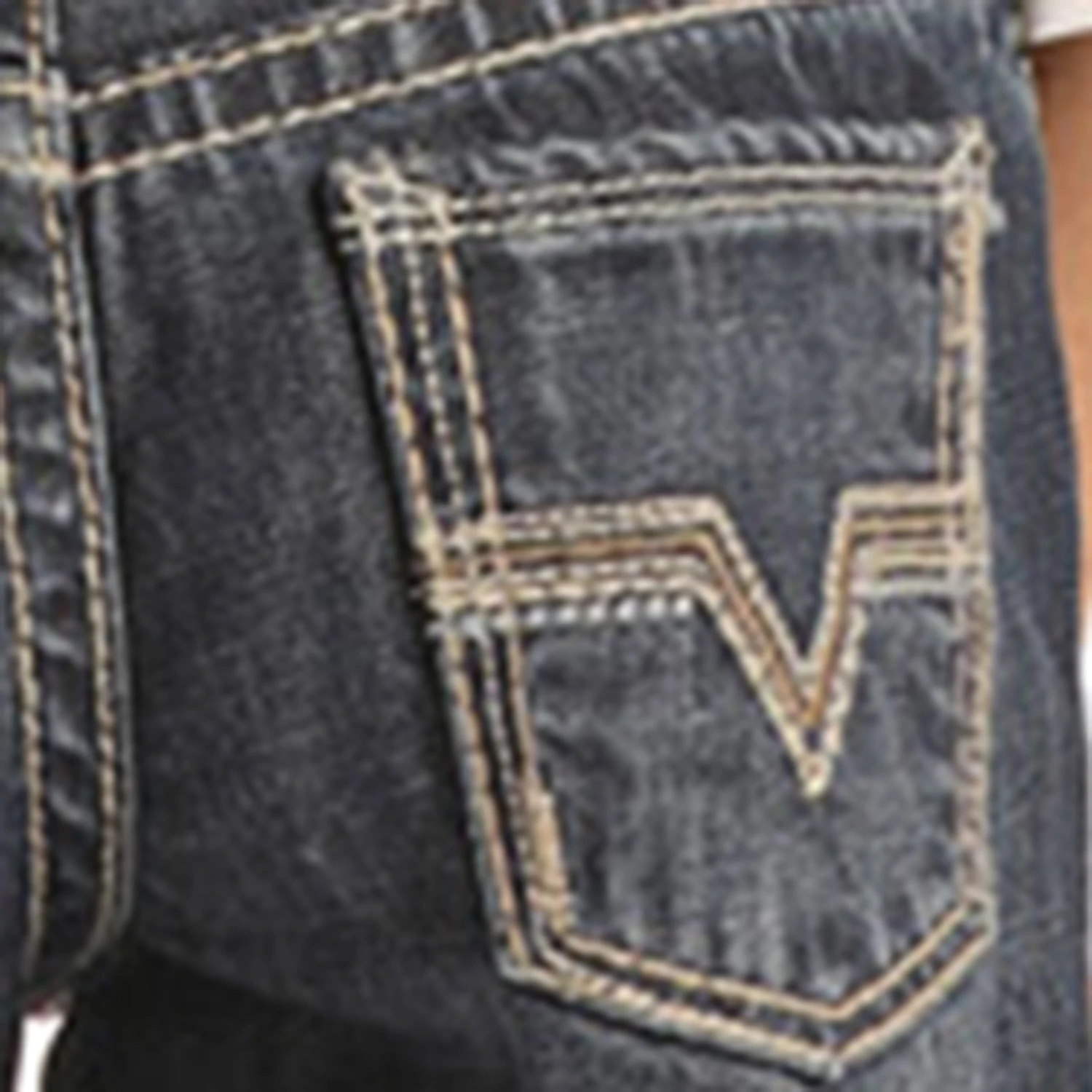 A great pair of jeans for your little cowboy. Work or play, these jeans will hold up. They are a regular fit and boot cut so he can stack them on his boots just like dad! Made in a dark vintage wash that won’t show stains as easily. Fashion back pockets too!