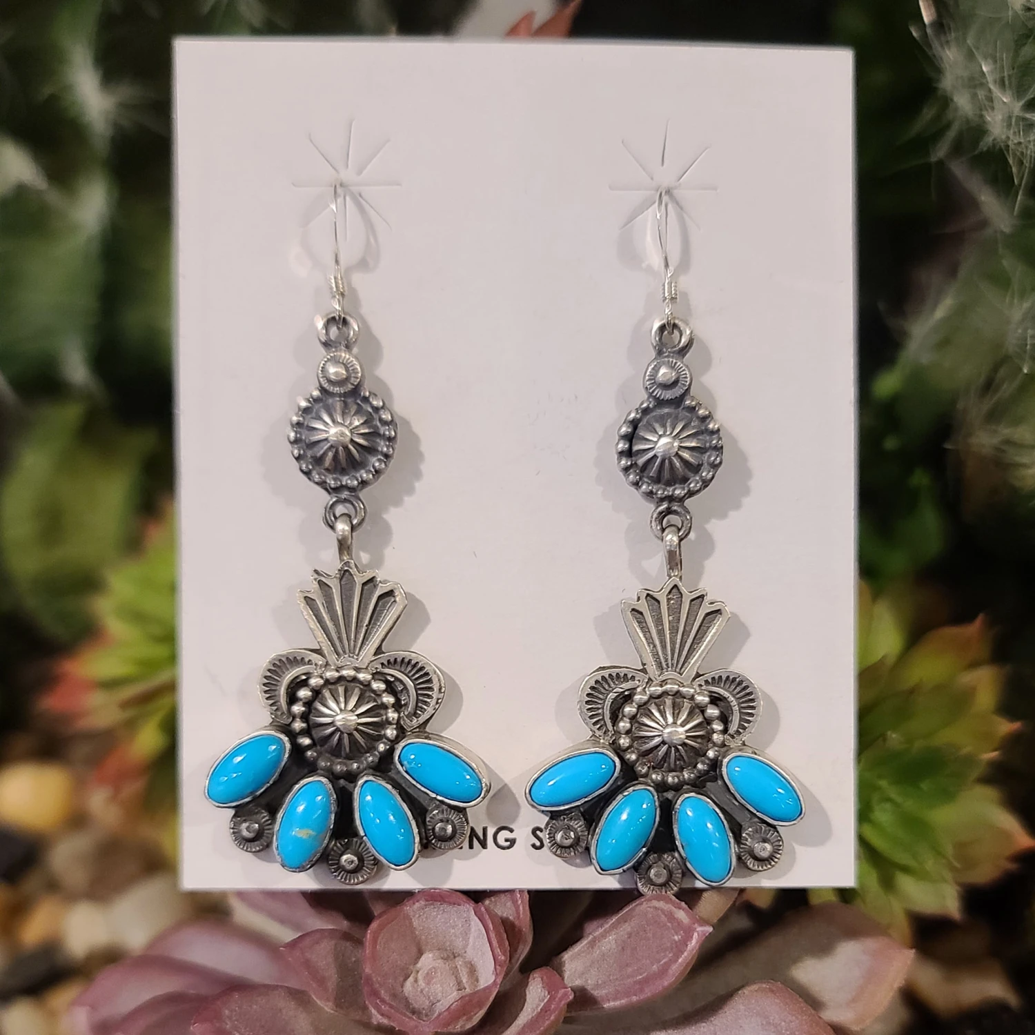 Just look at these unique turquoise dangles. The silver work is quite impressive on these beauties.