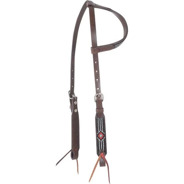 This gorgeous but functional slip ear headstall from Cashel Company features chocolate skirting leather and beautiful beaded accents. The headstalls have double stainless-steel buckles and bit ties for convenience to change bits.
