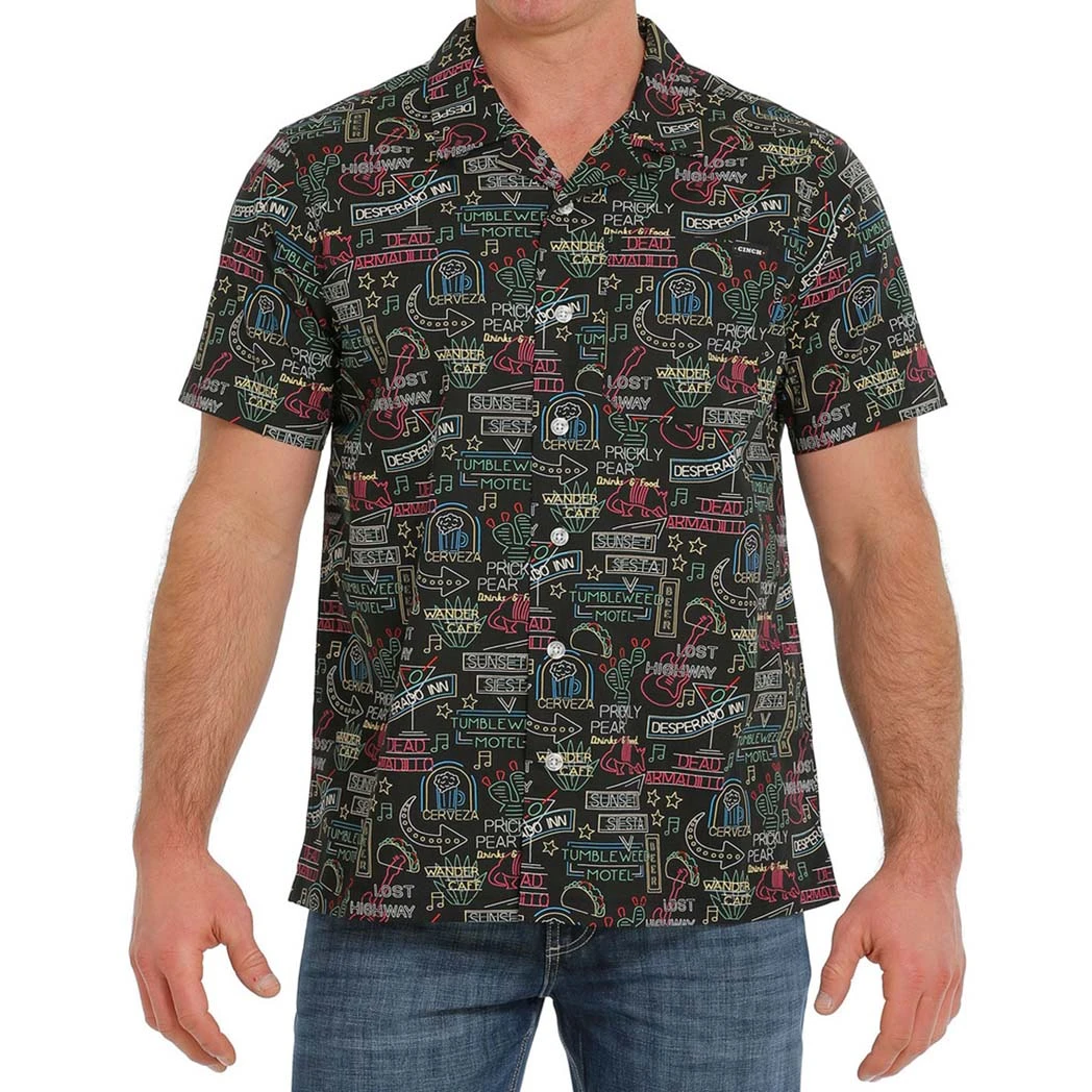 This fun neon sign button down short sleeve is such a fun shirt. Let your personality shine through with this fun shirt.