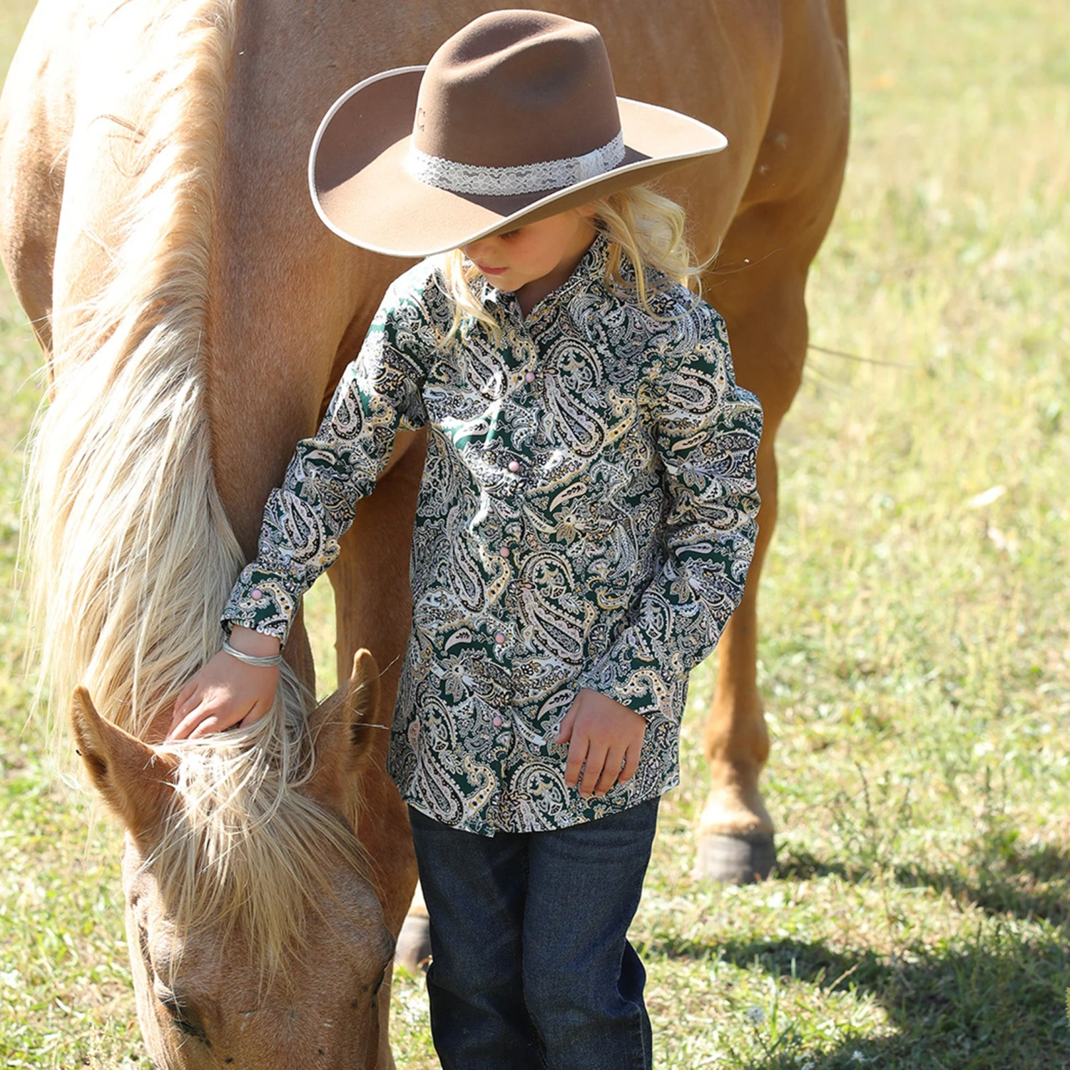 The perfect competition shirt for your little cowgirl! This green paisley Cruel Girl shirt is absolutely beautiful and will look great in the arena.