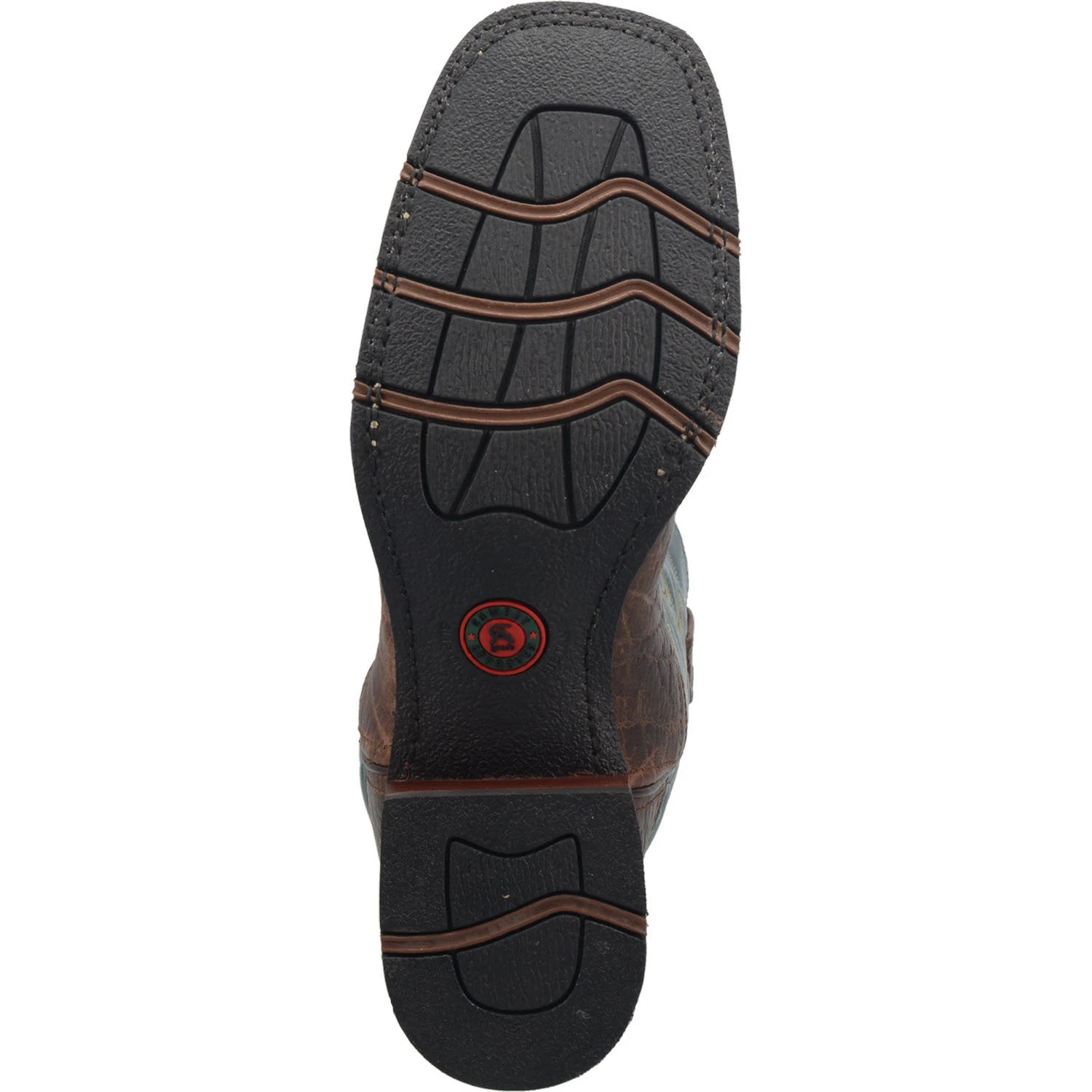 This men’s square toe boot from Dan Post has a soft brown leather toe and a teal shaft with bright colored stitching! The removable orthotic is very comfy, you’ll be walking on clouds!