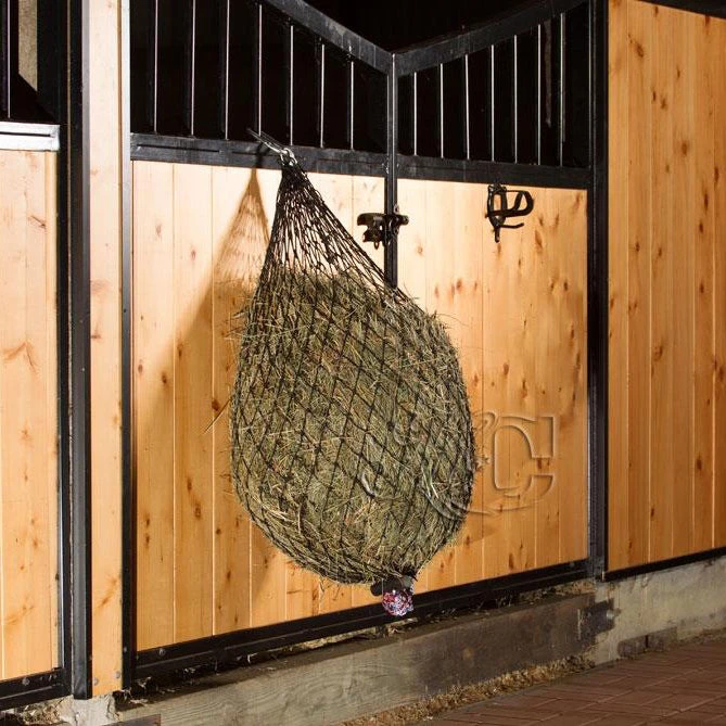 The Hay Chix Half Bale Net attaches easily to a trailer, eye hook, fence or tree, it’s perfect for feeding on the go. This net holds about 1/2 of a small square bale (4-6 flakes.)
