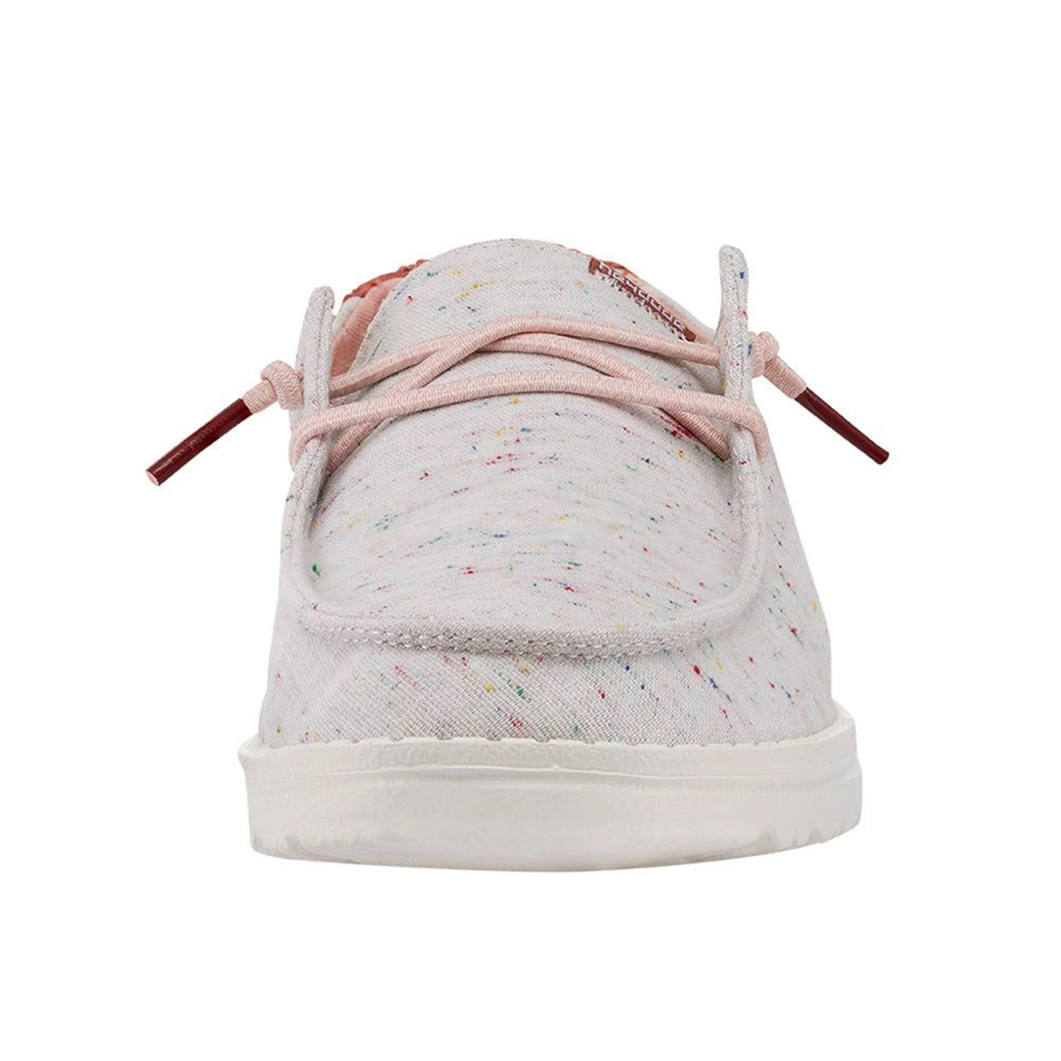 Update your casual ensemble with the Hey Dude Wendy Confetti Shoe. Featuring a classic slip-on style, they have a unique colorful finish that is fun and festive. Inside, it has a memory foam cushioned insole for all-day comfort and uses Flex & Fold Technology to keep it lightweight.