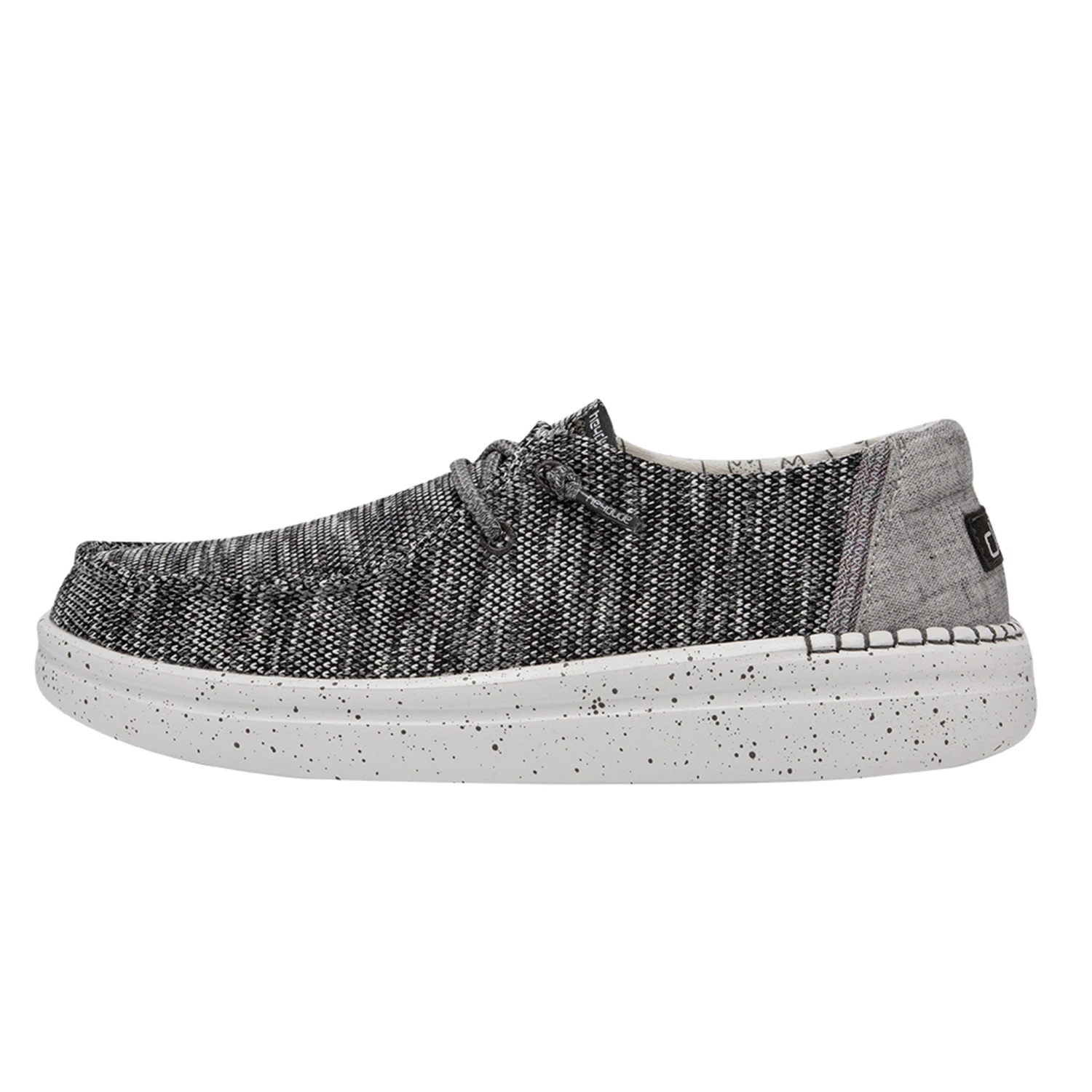 Heydudes iconic low-top moc with a custom look. Plus a little extra height and a little extra cushion. Still super lightweight.
