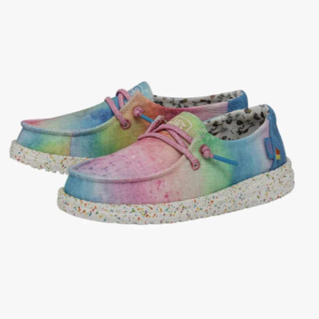 Bring on funtimes and sunshine with the Hey Dude Wendy Youth Dreamer Magic! Fun, bright designs help the imagination soar! A soft, breathable cotton canvas, finished off on an ultralight outsole with elastic laces insure your little one is stylish and comfy!