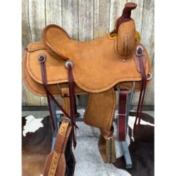 This 16 Inch Signature Ranch Cutter Saddle is definitely a fan favorite. It has so much going on in the leather work. Lets start with the basket weave tooling through out the saddle followed by the rope tooling on the border. They added a floral tooling on both skits as well as the pommel taking this to a whole new level. Lets now talk about the star design on the horn. This saddle is going to be one that you want to add to your tack room.