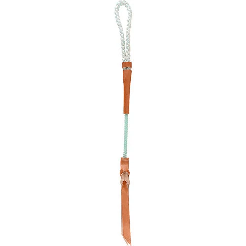 This aqua rope quirt had an adjustable braided rope wristband and leather popper.