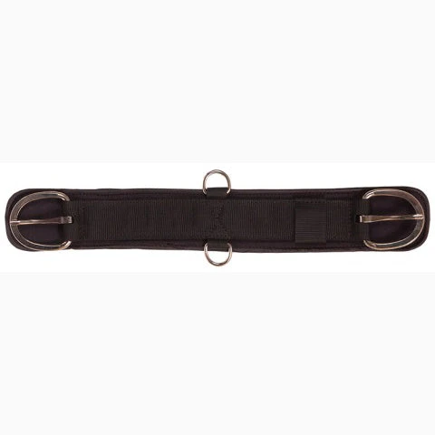 This pony cinch from Mustang is a straight back nylon cinch with PVC backing! PVC is very easy to clean and keeps the pony from chaffing and soreness!