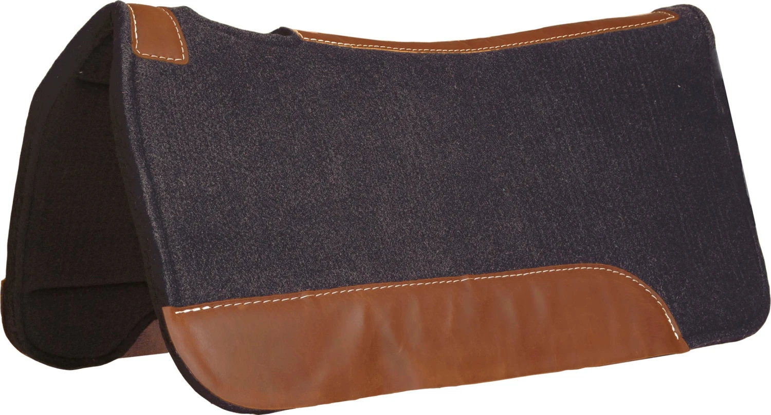 Black felt pad with contoured spine, withers cut-out and top grain wear leathers. This pad measures 32″ x 31″ and is 1″ Thick