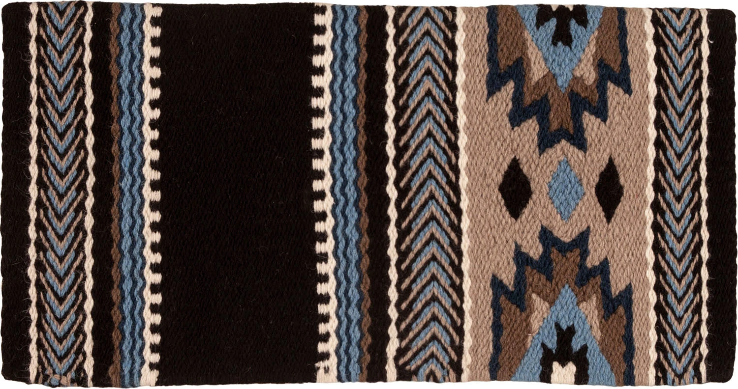 Custom designed Black, Tan, and Blue Temecula pattern blanket is hand-woven of 100% New Zealand wool.