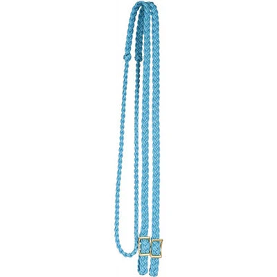 Flat braided nylon rein has two easy grip knots and features solid brass Conway buckles on each end.