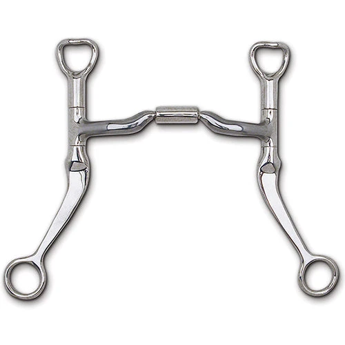Stainless Steel 7″ Flat Shank with Sweet Iron Low Port Comfort Snaffle (MB 04, Level 2) Copper Inlay. This mouthpiece is made of polished Sweet Iron which naturally oxidizes or rusts. Harmless to horses, it has a sweet taste and promotes salivation.
