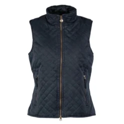 When a coat is too warm reach for this poly-filled quilted vest. It has a quilted adjustable elastic waistband with snaps and a drop down tail hem for extra coverage. It features a 2-way zipper, zip hip pockets and a inside security pocket.