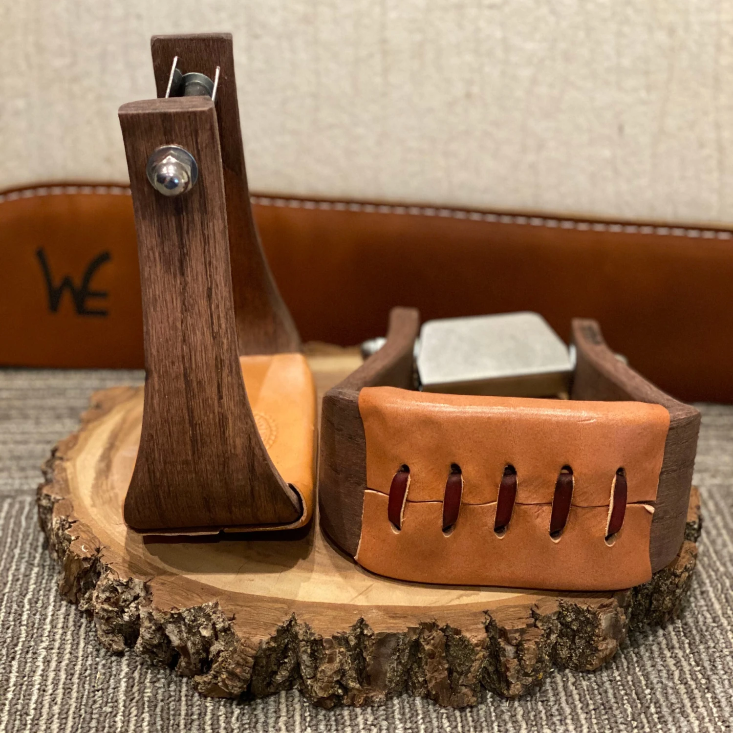 Meet The Duke, aptly named after John Wayne and the best-looking, best-riding, best-built economy stirrup on the market. A sidekick to the Nettles Stirrups Premier Line, it too was designed by cutting horse Hall of Fame trainer and problem-solving guru Ronnie Nettles. Made of five oak laminates from logs milled at the Nettles Stirrups Manufacturing Campany, The Duke is a great basic work stirrup. It is graded five stations during the building process, has rounded inside edges and is finished in a Rustic Cherry stain that blends smartly with today’s saddles. The Duke’s excellent stability and smart style makes it the best value in economy stirrups on the market.