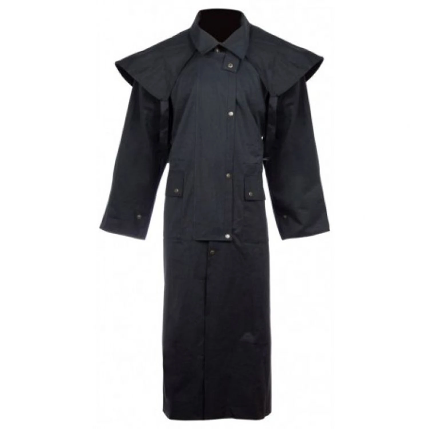 This oilskin duster will keep the elements away from you. The duster is made with 100% cotton and specially infused twice with our oil/wax formula to ensure this duster is waterproof and will help keep you protected from rain, wind, and snow with added cotton liner.