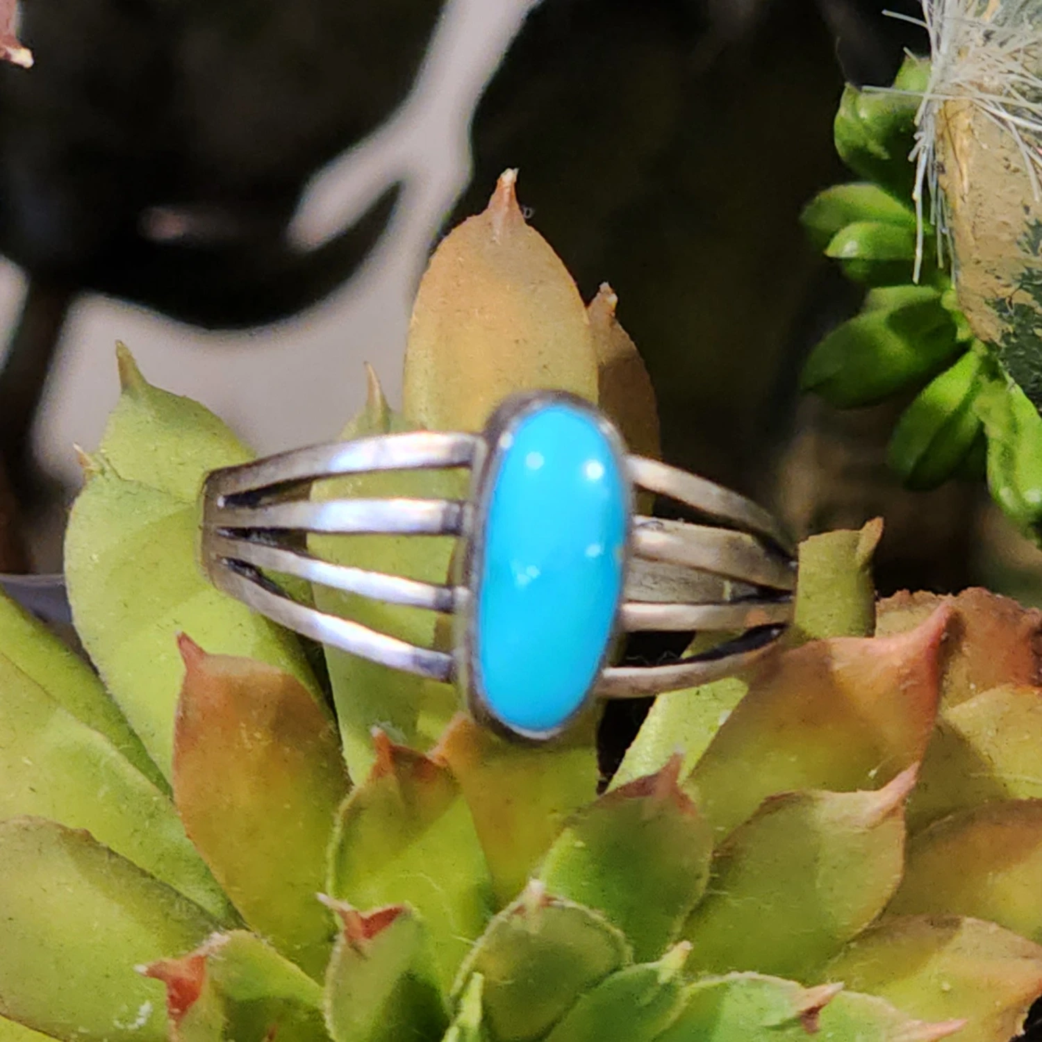 This unique banded ring is so fun! We just love the beautiful turquoise stone in this ring.