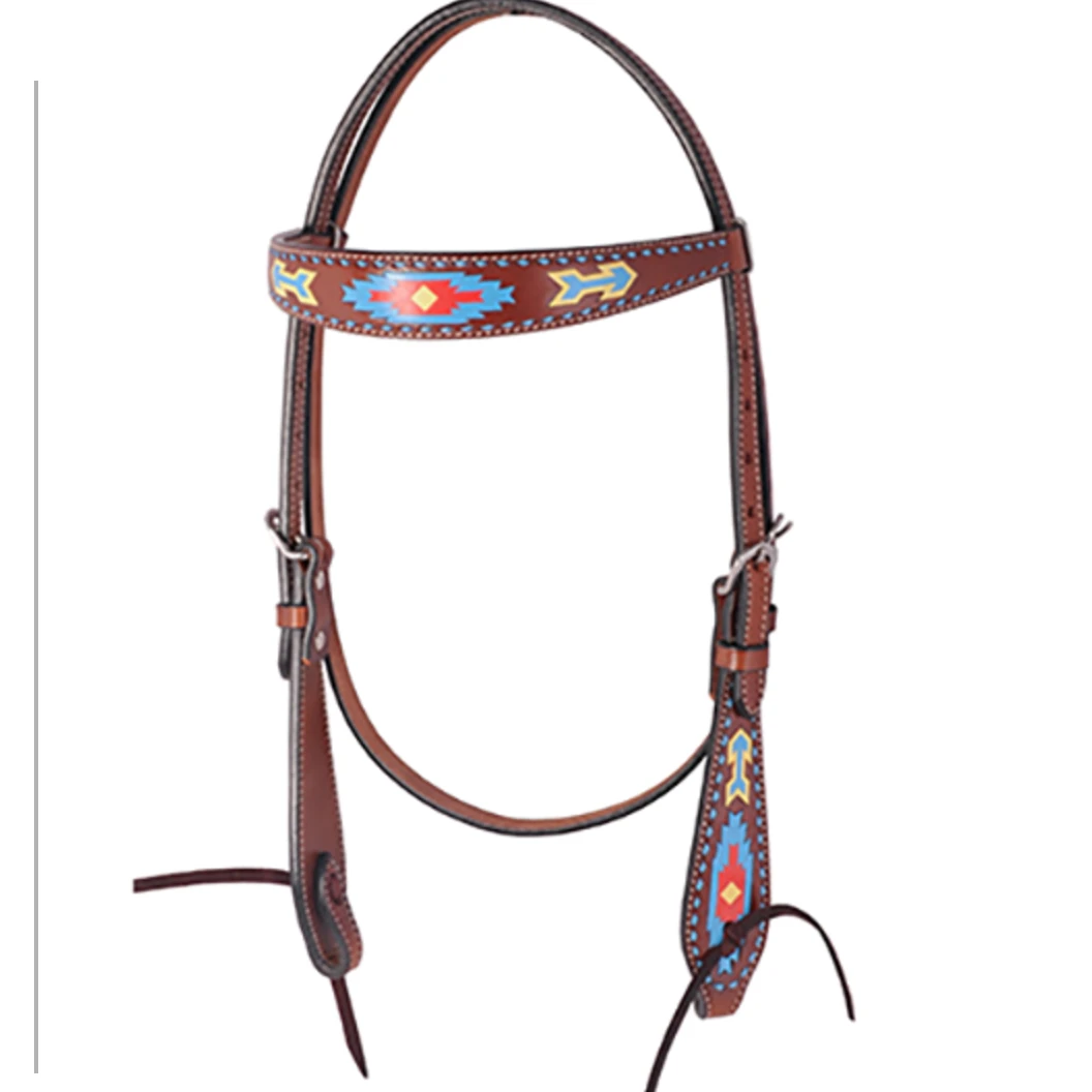 A beautiful southwest style had-painted browband headstall from Oxbow.