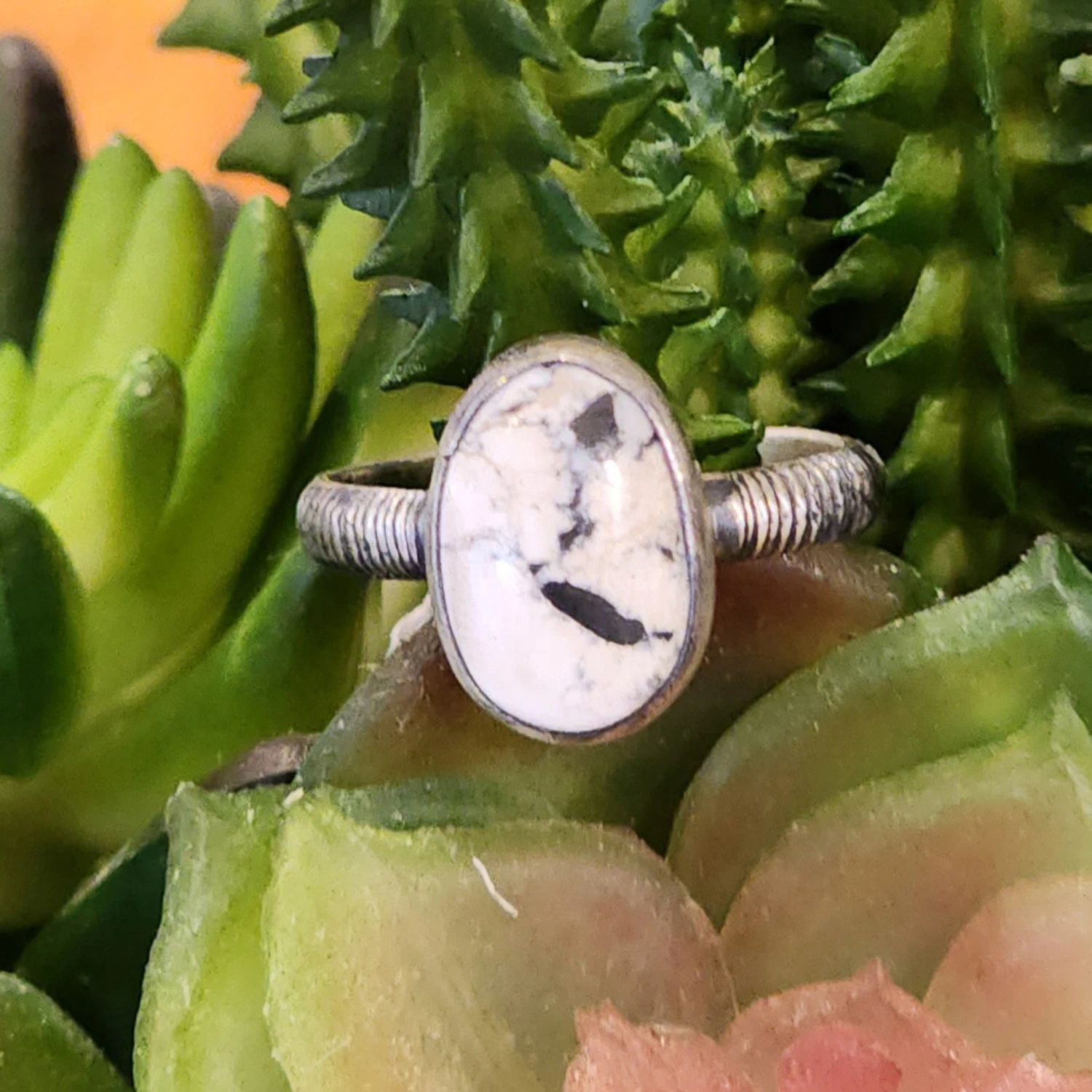 We just love this White buffalo ring. The color combination in this stone is stunning.