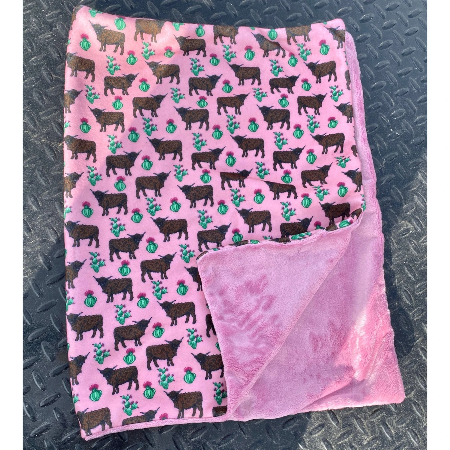 This Pink Highland Baby Blanket is so adorable! Perfect for the newest addition to the herd. Super soft and double thickness for extra warmth, this blanket is perfect for the stroller or carseat.