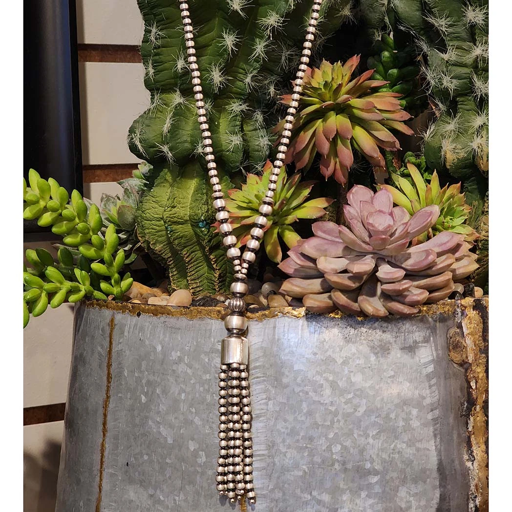 This cute sterling silver pearl necklace has a fun tassel look to it. Sure to dress up any outfit.