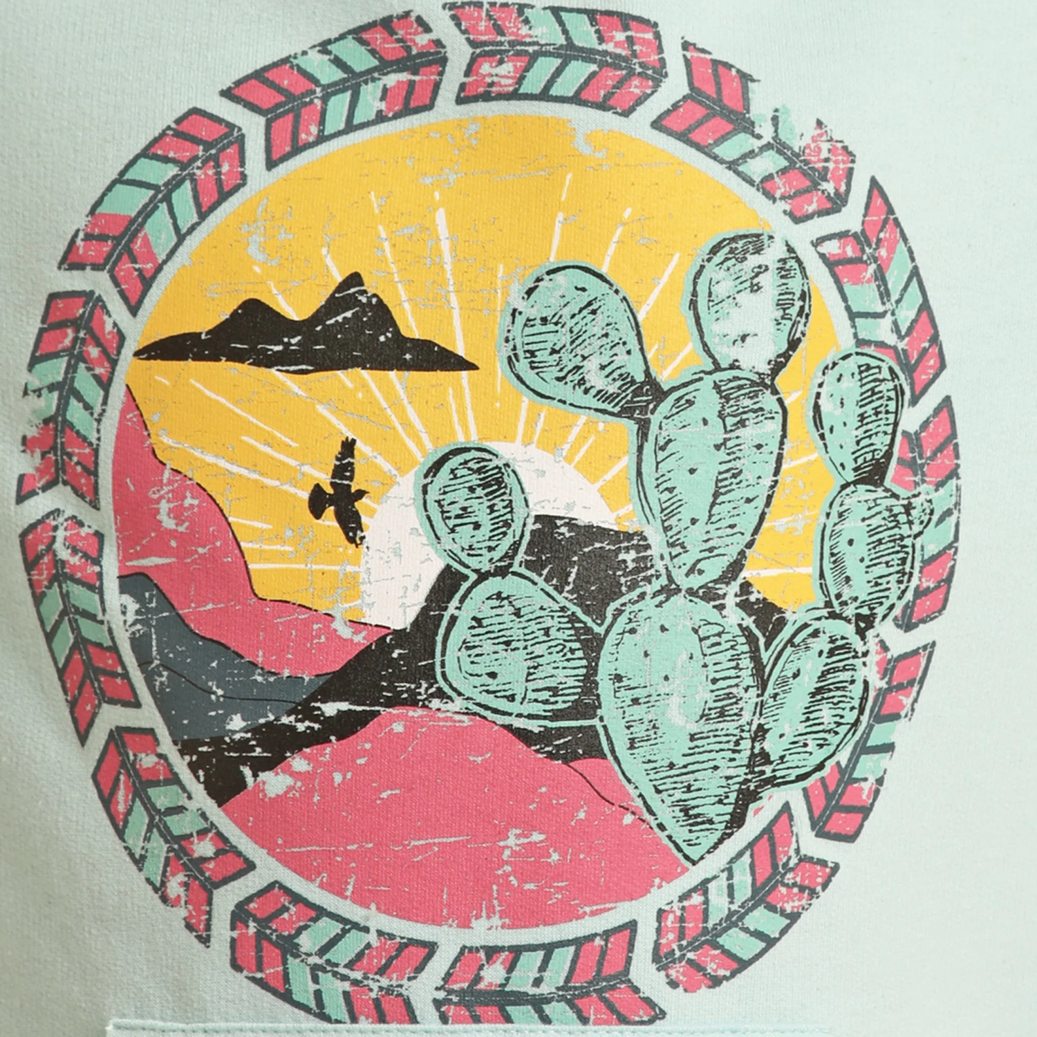 The perfect hoodie for your lil’ cowgirl. A pretty light turquoise featuring a southwest cactus design.