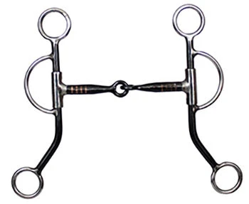 Stainless steel training snaffle bit with 8″ cheeks. 5″ sweet iron smooth snaffle mouth with copper inlay.