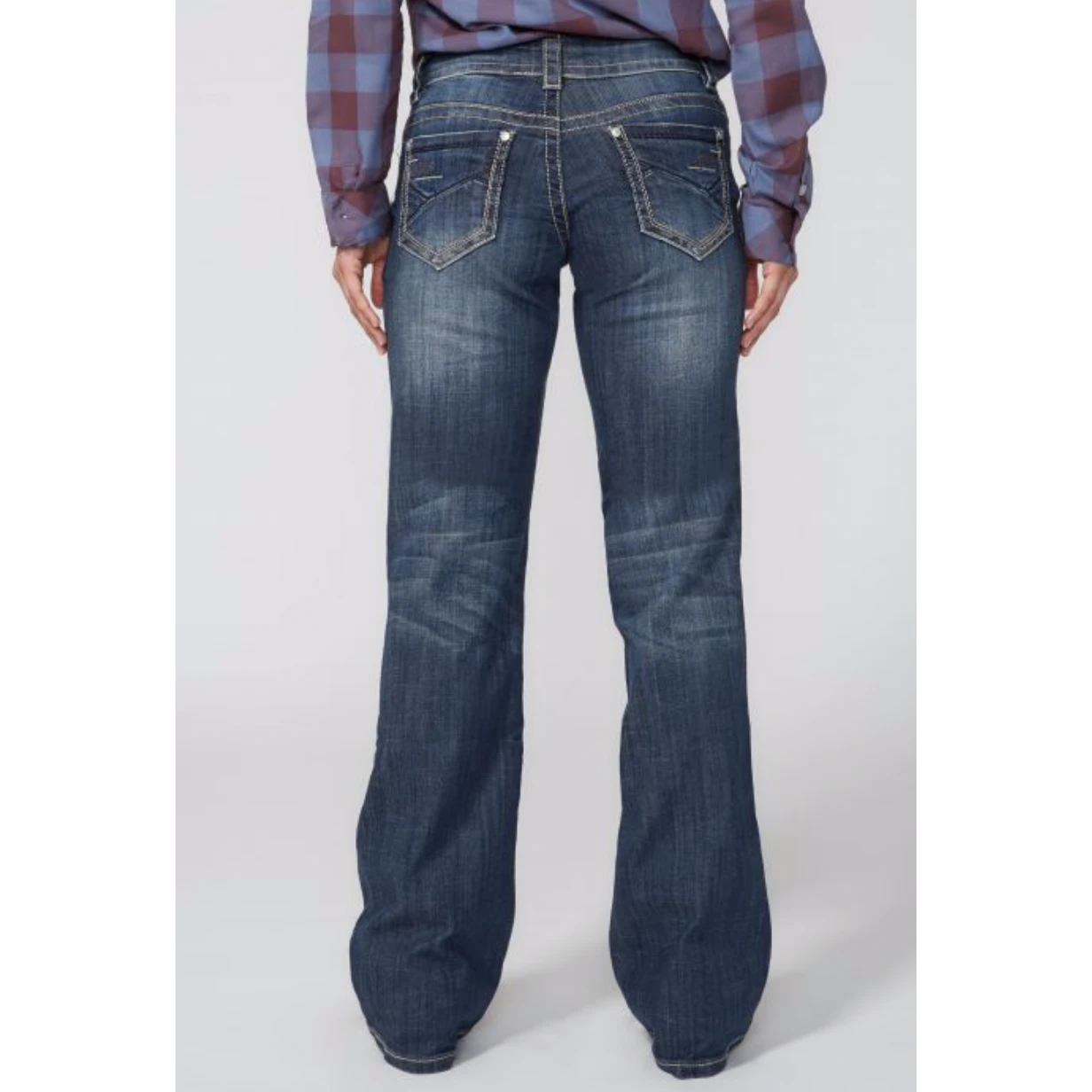 The 214 Trouser Fit Jean With Deco Back Pocket have a great fit, sitting just below the waist with a moderate fit through the thigh and opening to a flared leg. Gently hand sanded, style features decorative angular stitching on back pockets and traditional 5-pocket zip and single button closure.