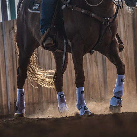 These white front boots from Top Hand feature a 4 way stretch for a glove like fit, single layer seams along the leg for a closer gap free fit to keep dirt out.