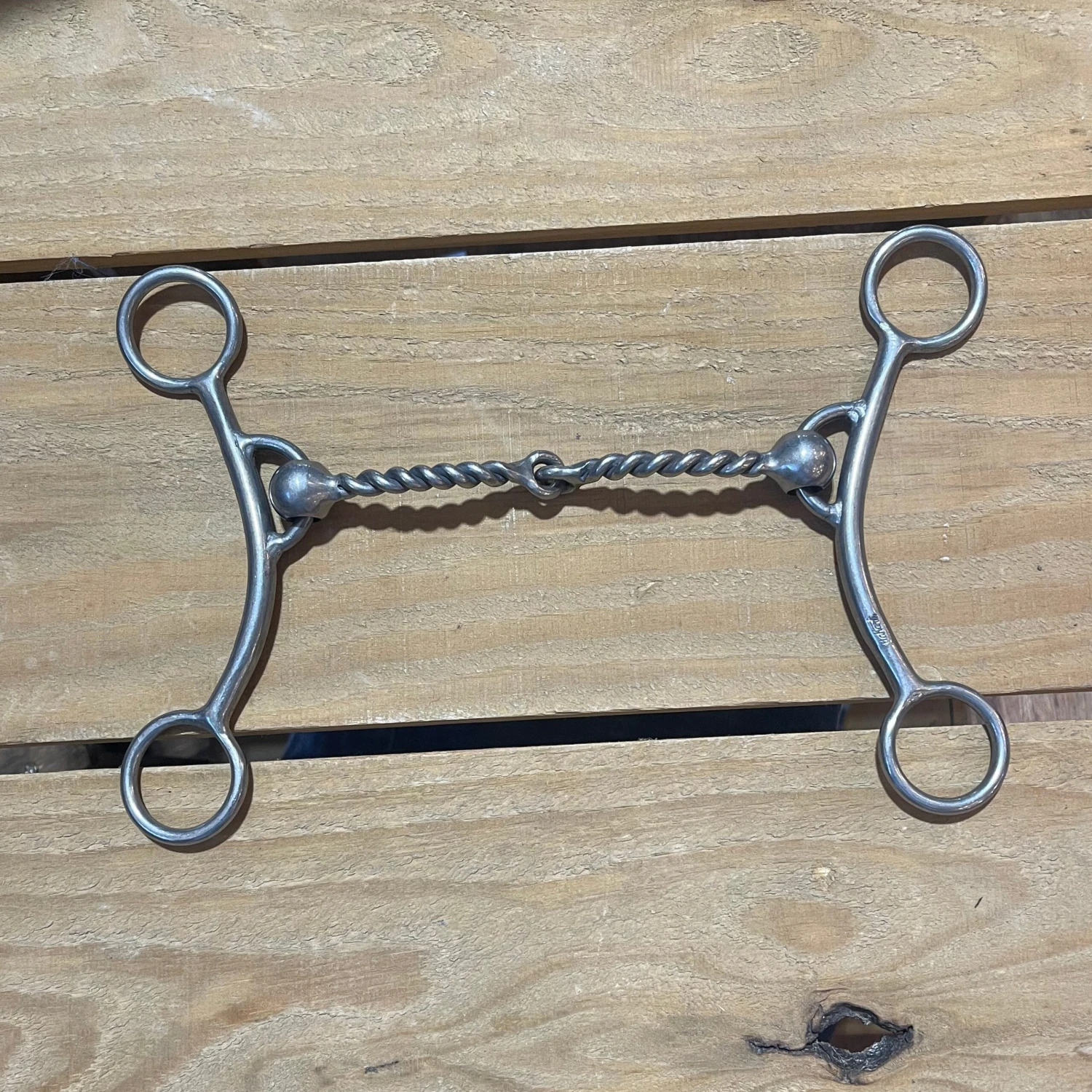 The Little Betty is Handmade by Troy Flaharty, it offers a great feel and weight. This bit is designed the same as the regular Betty, just with a shorter shank. This particular bit features a twisted wire snaffle.