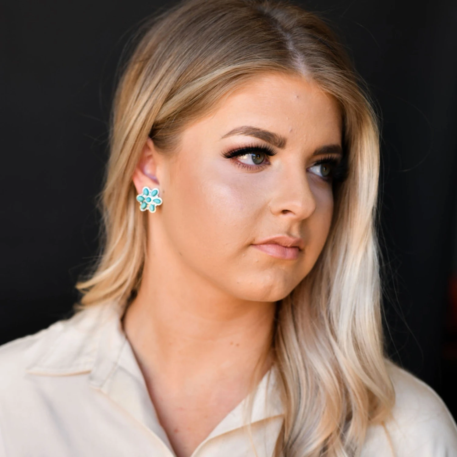 These simple yet beautiful turquoise flower stud earrings are perfection!