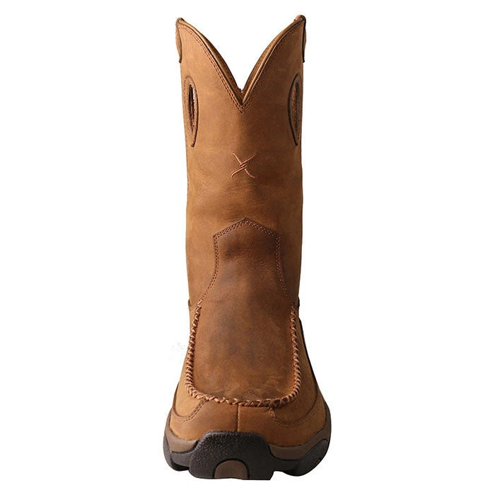 Twisted X Men’s Work Waterproof 11″ Composite Toe Pull-On Hiker Boot is offered with premium full-grain leather, a breathable waterproof lining and air-mesh lined shaft. The Twisted X® molded footbed is made for all day cushion, support and shock absorption. Molded rubber outsole is oil and slip-resistant.