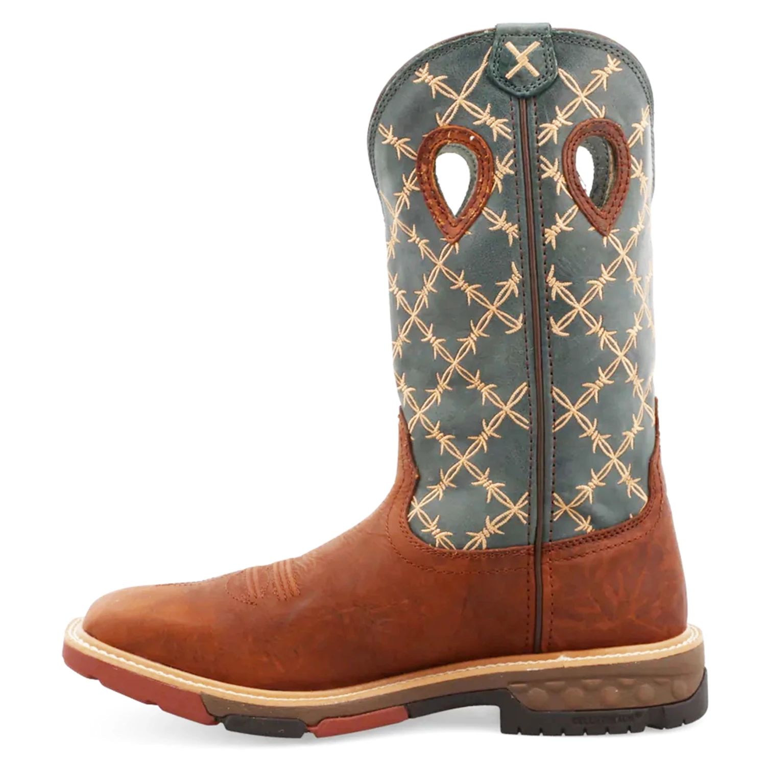 This Men’s 12″ Western Work Boot was made for all day comfort. Handcrafted in full-grain leather, this boot features an air-mesh lined shaft for improved breathability. For stability and durability, Twisted X® has combined a molasses-infused EVA midsole integrated with Twisted X® CellStretch® comfort technology and a nylon/glass fiber shank. The oil and slip resistant molded rubber outsole provides durability and improved traction for whatever your day may bring. Twisted X® Work footwear provides all the comfort, stability, and durability that you need to outperform any demanding work environment.