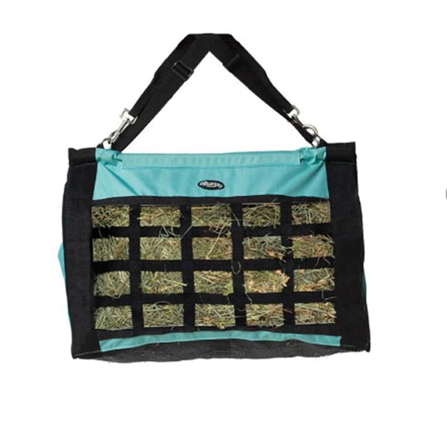 This top loading slow-feed hay bag from Weaver is made from 600D polyester. Featuring a slow feed design that promotes better digestion. With two adjustable, detachable straps for ease to hang, this hay bag holds two average size flakes of hay.