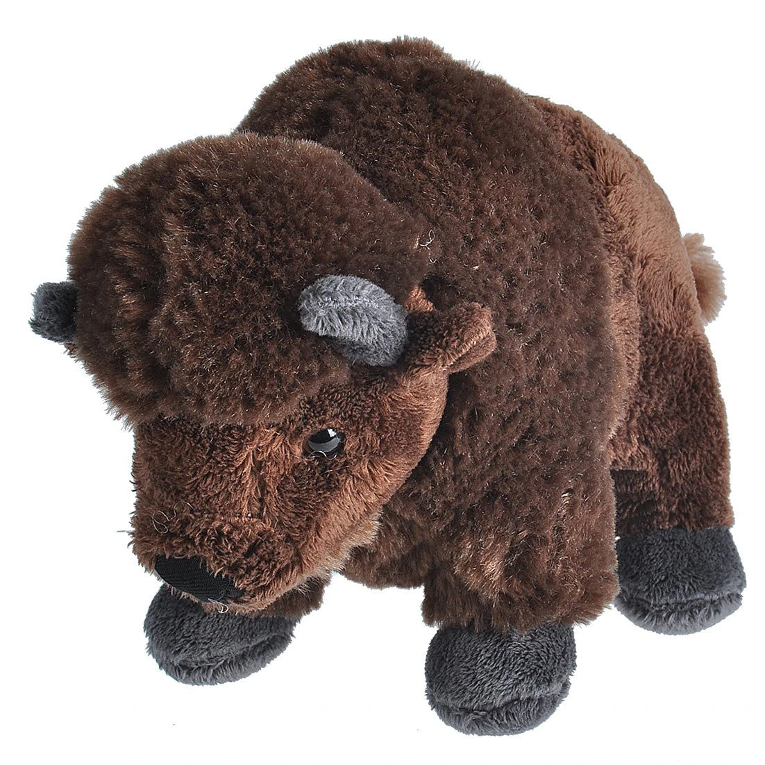 Explore the wild frontier in your own backyard with this cuddly stuffed bison. A coat of shaggy brown fur hangs from its humped shoulders and head.