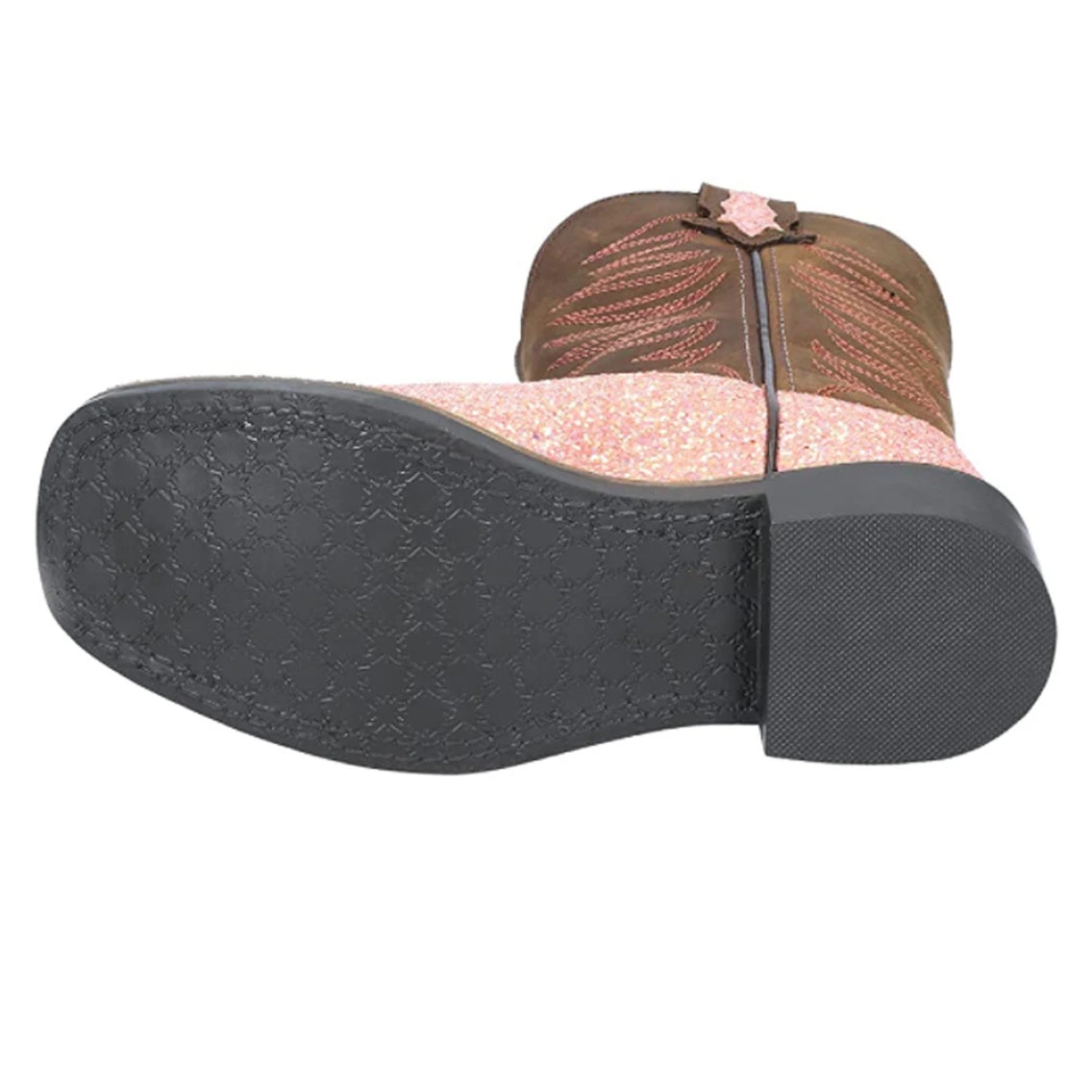 Perfect for any cowgirl that loves things that sparkle. These boots are made of genuine leather and man-made materials with a pastel glitter accent, Each pair comes with a cushioned insole for all-day wear.